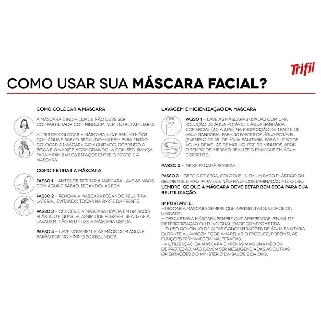 Dupla camada protetora, alças em elastano que dão menor tensão na orelhas, sem costura e reutilizável.